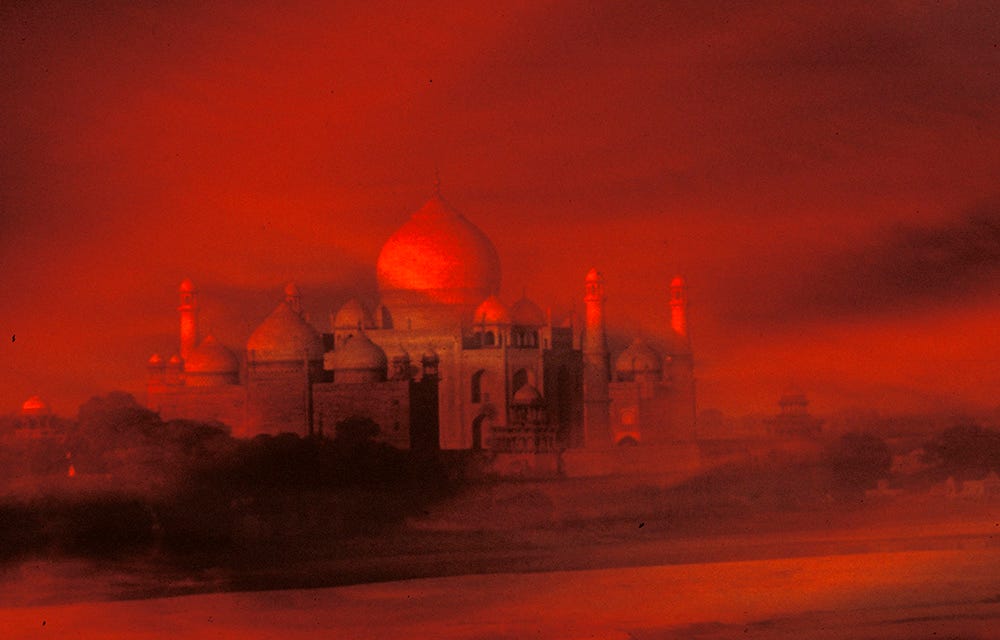 My wife is a former professor of South Asian Studies at the University of California, Berkeley. She and I, separately or together, have led tours to Nepal and India for various organizations, including the Smithsonian Institution and National Geographic. When I first told her of my anticipation of photographing the Taj, she responded much the way Felicia did to Lenny, but with the excellent intention of offering a challenge, not a discouragement. She has always known that my comfort zone lies in the discomfort of challenge. Yes, I had seen all those travel posters of an elaborate white-ish Muslim monument. I had no intention of re-re-re-recording it.
