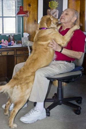 Though usually fearless, the onset of thunderstorms had him racing to my bed, scrambling under the covers, trembling until my embraces and caresses calmed him, and we both fell asleep. We even took turns in saving each other from serious threat. Using a silent hand signal, I once stopped him from running toward me across a park road just as a maintenance vehicle was approaching. He even dropped his favorite toy, a pine cone, and just lay there waiting for the “come” signal, an inward sweep of my extended right arm. On a very foggy, lonely night at the San Francisco Marina, I just barely saw a figure approaching us, perhaps someone with ill intent. On my almost inaudible whisper, “speak,” he growled and barked so viciously that the figure disappeared into the mist. Then he turned to me, anxious to receive the customary praise.